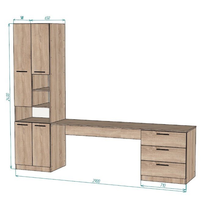 Ми прагнемо, щоб кожен наш виріб був унікальним. Ви можете збільшити чи зменшити розміри столу, змінити кількість полиць, додати або прибрати шафки, а також обрати колір з нашої палітри. Завдяки такій гнучкості ви отримаєте ідеальний стіл з пеналом, який буде відповідати всім вашим потребам і гармонійно впишеться в інтер’єр.