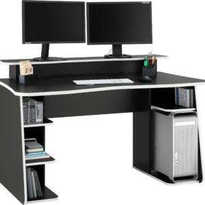 * Поверхность должна быть достаточно большой для того, чтобы на ней могли спокойно разместиться монитор, а то и несколько, клавиатура, аудиосистема, периферийное оборудование и т.д. А также и для мышки было достаточно места. Именно поэтому в большинстве своем геймерские столы предусматривают наличие дополнительных полочек, выдвижную планку для клавиатуры, нишу для системного блока. Кроме того, в свободное время от игр, такой компьютерный стол может использоваться как рабочий. Соответственно, на нем должно быть место и для бумаг, канцелярских принадлежностей, книг.